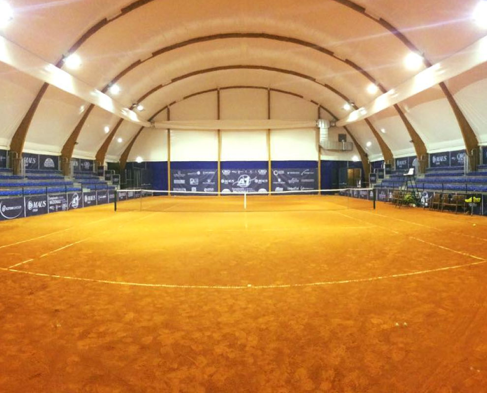 Il prestigioso palazzetto con un campo coperto in terra rossa con tribune da 400 posti a sedere.